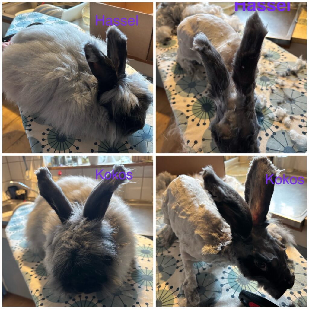Som vanligt går helgen alldeles för fort men jag har trots allt hunnit med en massa här hemma och dessutom njuta av ledigheten samt firat svärmor som fyller år i morgon. Hundarna har både fått dra och fått springa lösa (i hägnet) i helgen, vi har tagit ner voljären som rosellorna bodde i men eftersom honan dog för ett tag sen (och blev halvt uppäten av råttor) så fick hanen flytta in igen. Kaninerna har äntligen blivit av med sin långa päls, var extremt nödvändigt eftersom det har gått lite väl lång tid sedan jag klippte dem förra gången. Att det fick gå så lång tid beror på det kalla vädret vi har haft, de behövde helt enkelt ha pälsen under den perioden. Men nu är det riktigt vårväder och skönt, man ser vårtecken lite varstans i trädgården. Kaninerna ser inte kloka ut när de är nyklippta, dels för att jag inte är så duktig på att klippa men även för att det ser så konstigt ut utan den långa pälsen. Men det kommer snart att växa ut igen så att de blir söta igen.