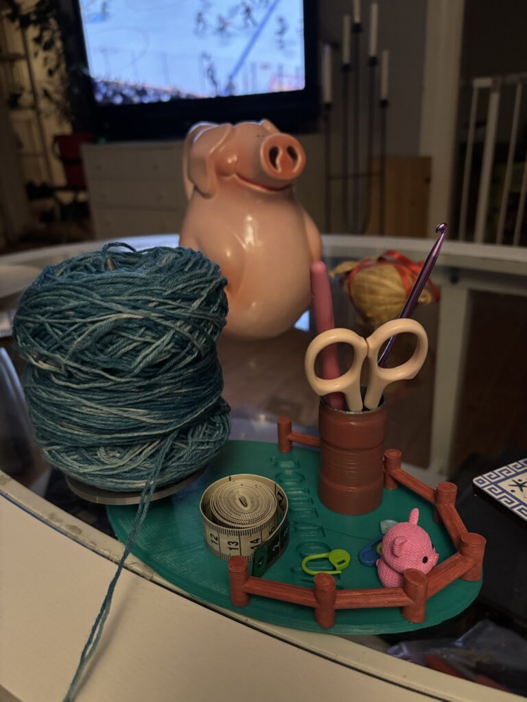Som vanligt så avslutar jag kvällarna i soffan med något handarbete och just nu är det sommarsockor som tillverkas och då är det smidigt att ha min garnplatta/hållare som min ene svärson har gjort till mig.